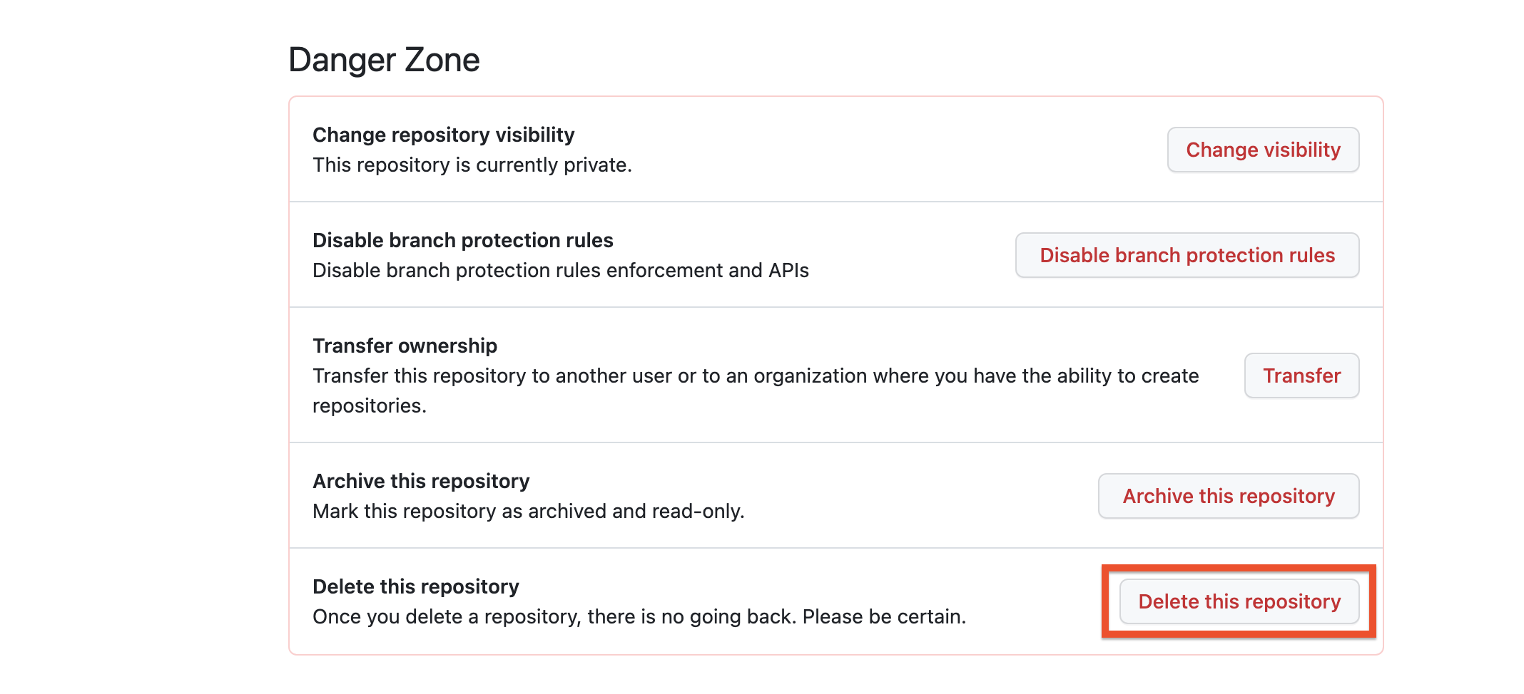 0.2. Settings > General 메뉴의 가장 하단으로 가면 [Danger Zone] 안에 Repository 삭제 버튼이 있습니다.