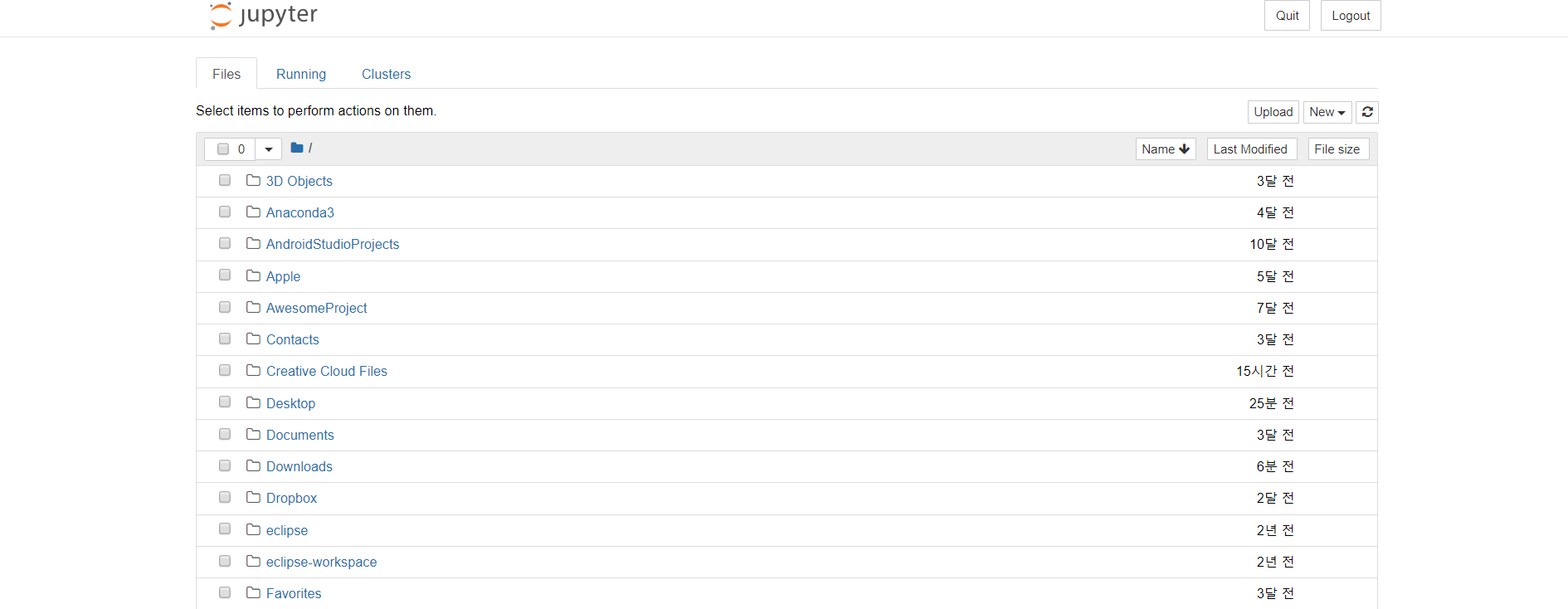 오른쪽 위에 New - Python 3 를 클릭해서 python 3 notebook을 생성합니다.