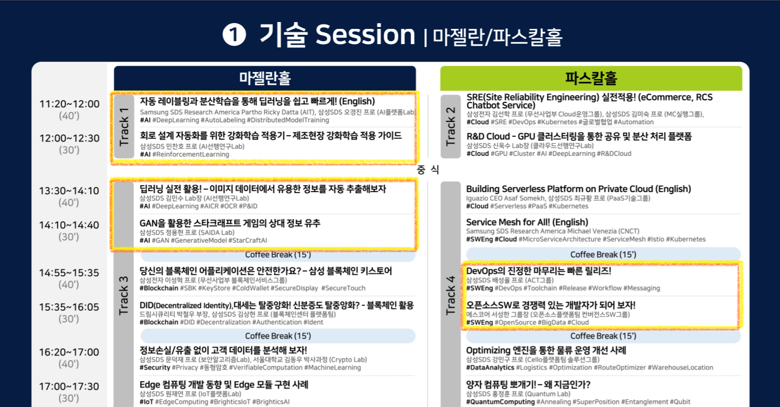 기술 Session외에도 Tutorial Session과 Deep Dive Session, 체험존, 스타트업기업 전시장이 운영되었고,