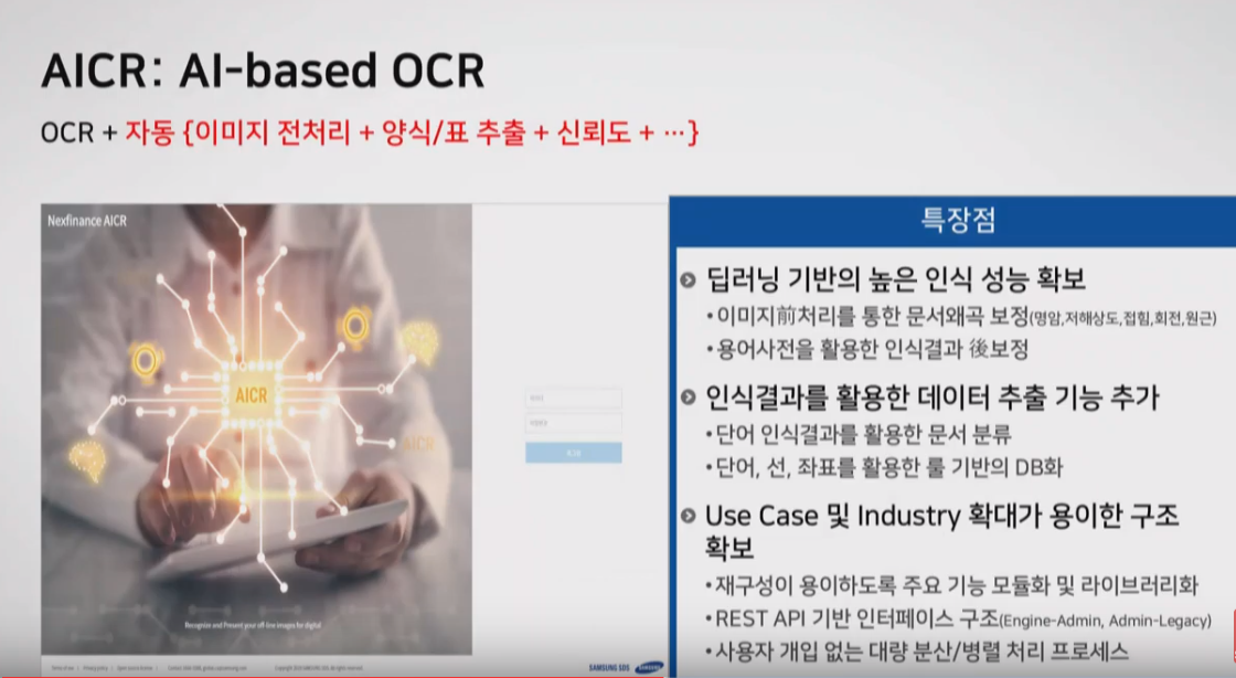 여기서 OCR에 AI를 입힌 AICR을 만들어 딥러닝 기반 OCR을 여러 산업에서 사용하고 있다고 합니다.