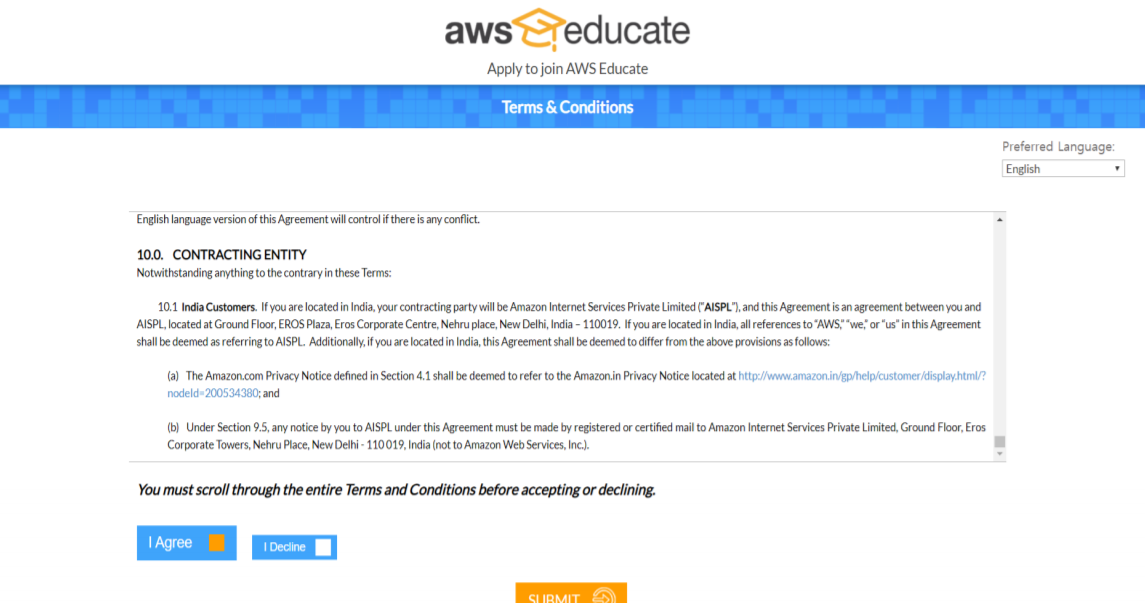 여기까지가 AWS Educate에 가입하는 방법입니다.