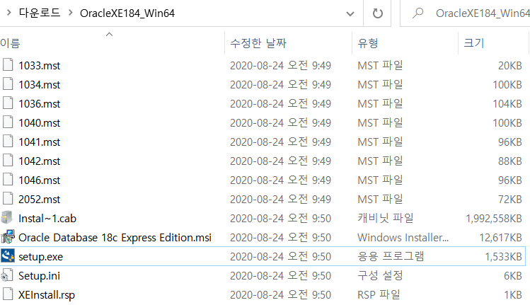 다운로드 된 폴더를 압축 해제 하고, setup.exe 파일 클릭