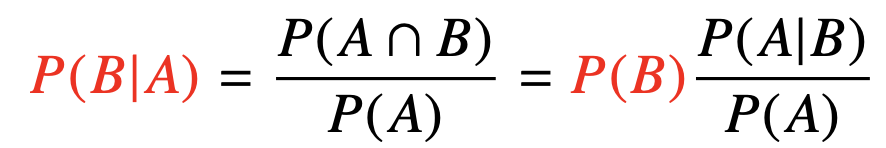 - A라는 새로운 정보가 주어졌을 때 $P(B)$로부터 $P(B|A)$를 계산