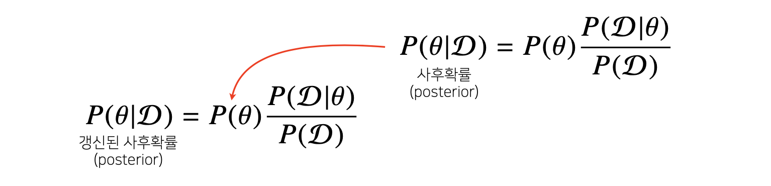 새로운 데이터가 들어왔을 때, 앞서 계산한 사후확률을 사전확률로 사용하여 갱신된 사후확률을 계산