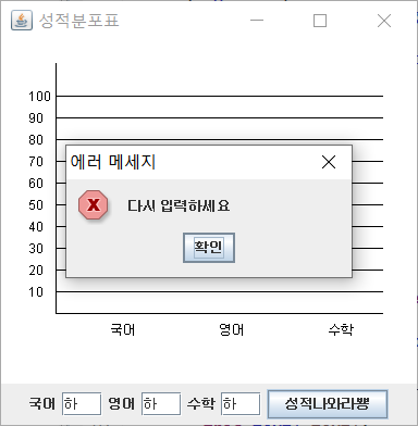JOptionPane.showMessageDialog(resultPanel, "다시 입력하세요", "에러 메세지", JOptionPane.ERROR_MESSAGE);