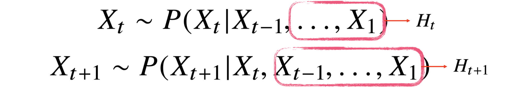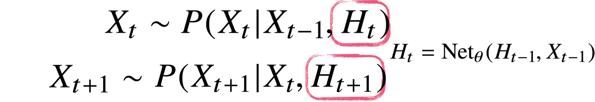 직전 정보 $X_{t-1}$와 직전이 아닌 정보들인 잠재변수 $H_t$로 인코딩