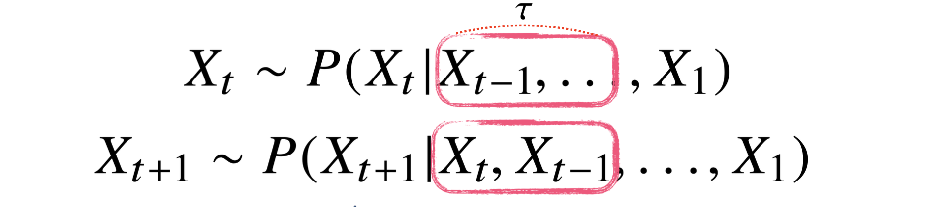 - $X_t \sim P(X_t|X_{t-1},...,X_1)$