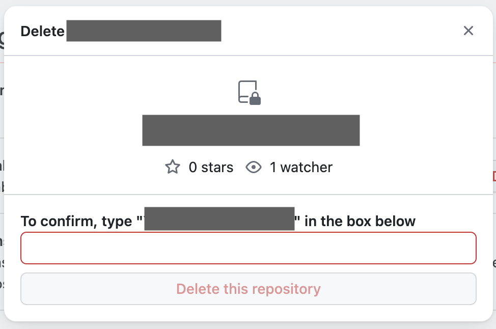 내가 삭제하려는 Repository가 맞는지 확인한 후, 레포지토리 이름을 텍스트 박스 안에 적어 넣습니다.