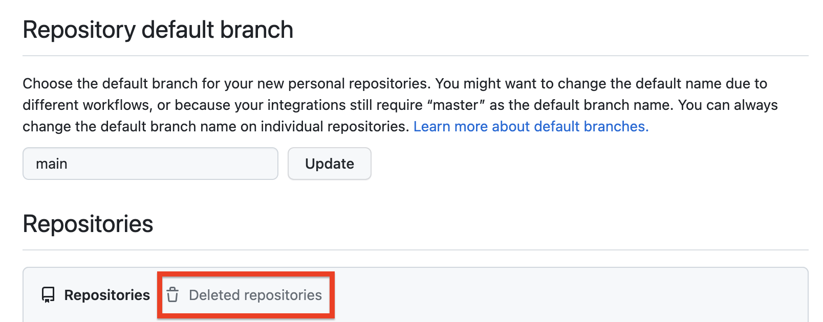 1.3. 중앙에 있는 Deleted Repositories 탭 클릭